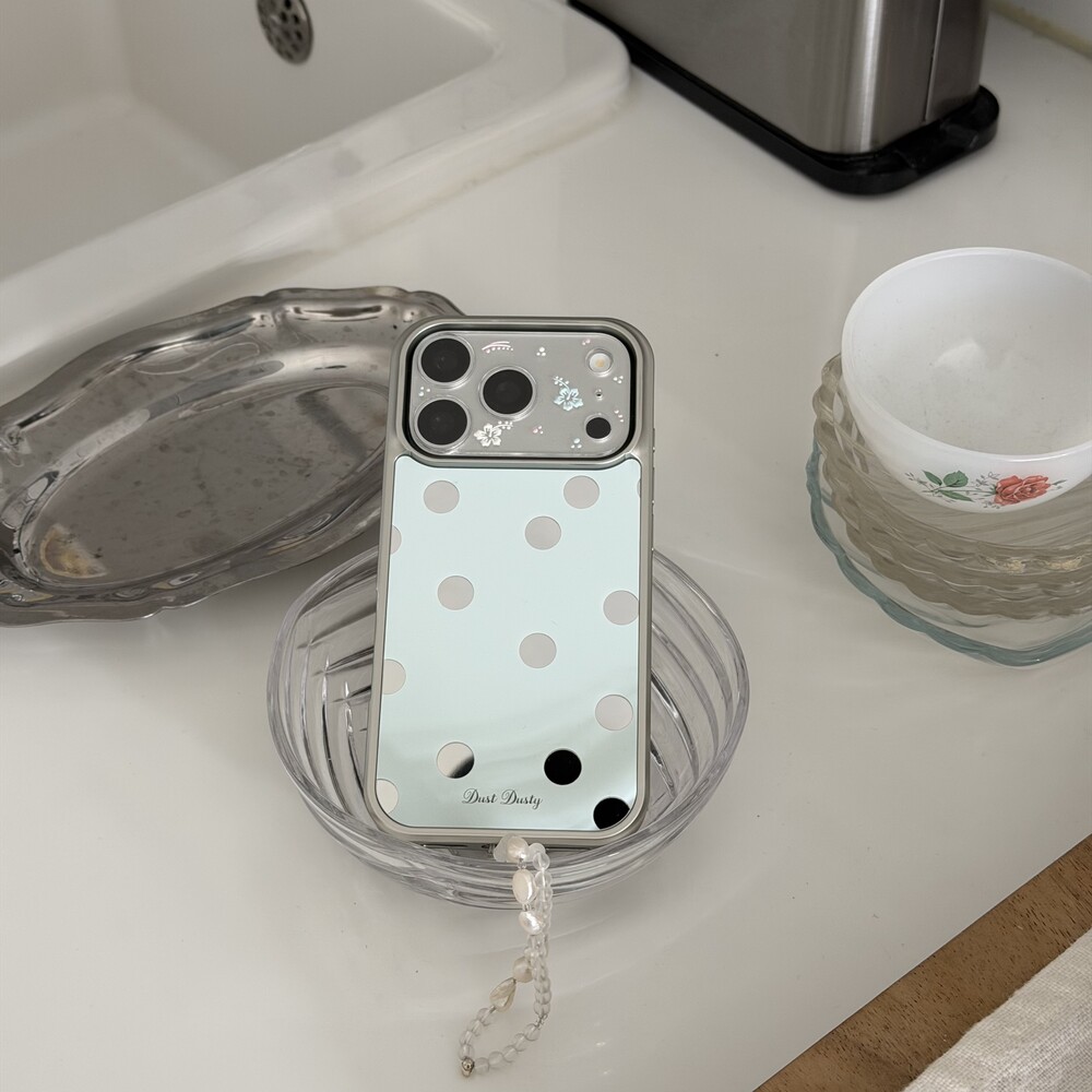 미러케이스에 인쇄가된 케이스로 도트와 로고 부분이 미러로 되어있습니다!