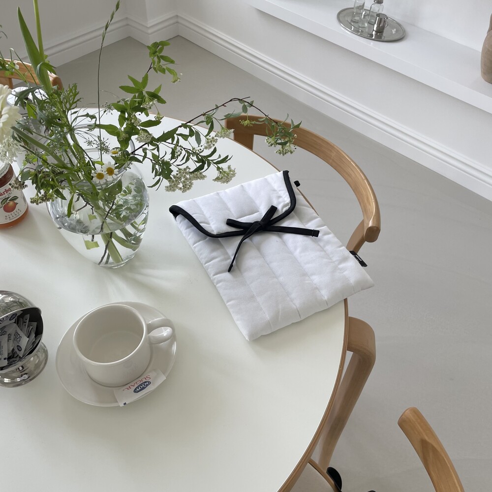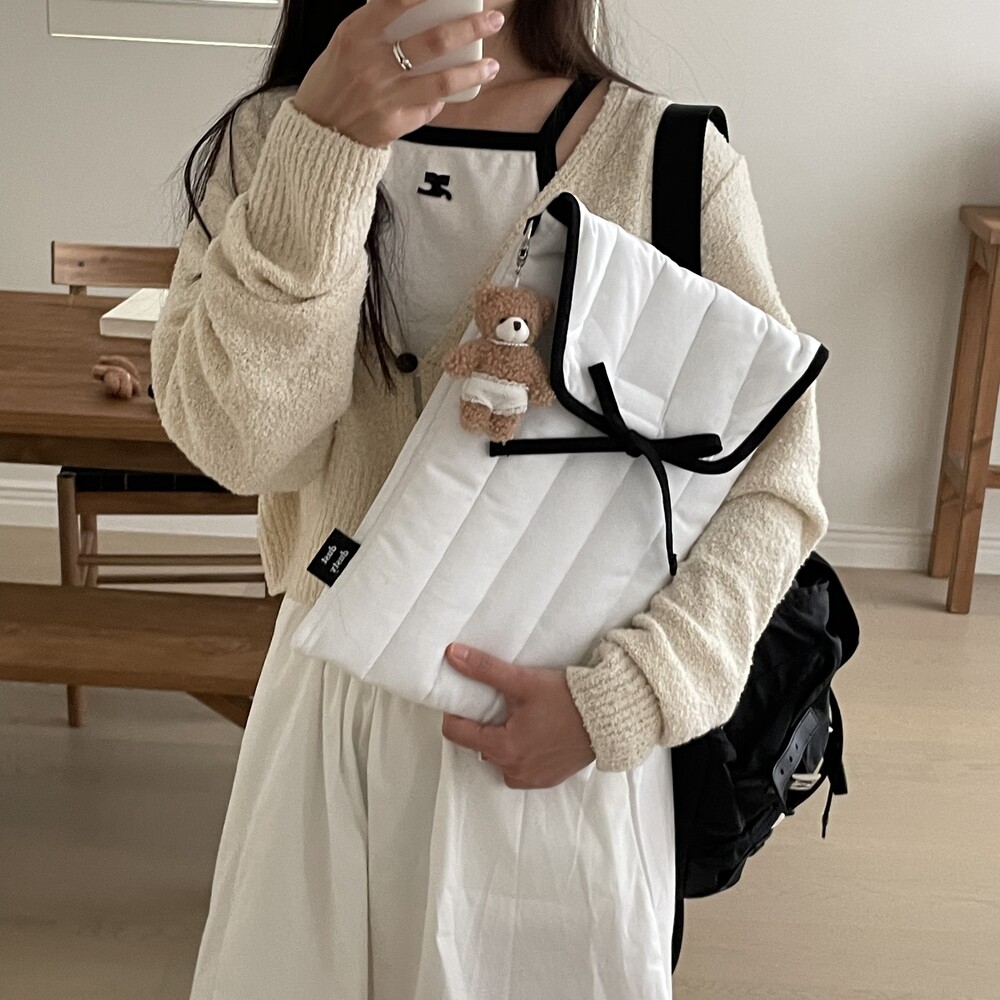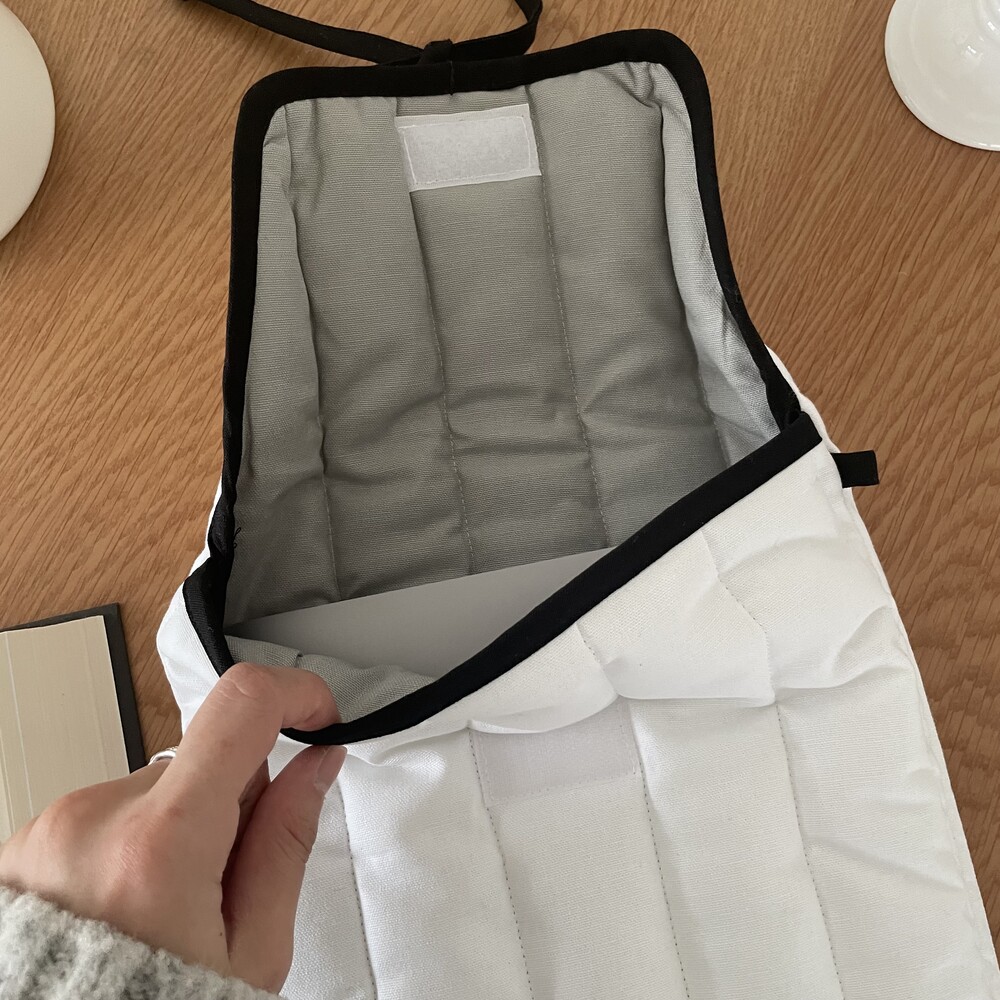 내부 안감은 겉감인 화이트와 다른 그레이 색상으로 제작하였습니다