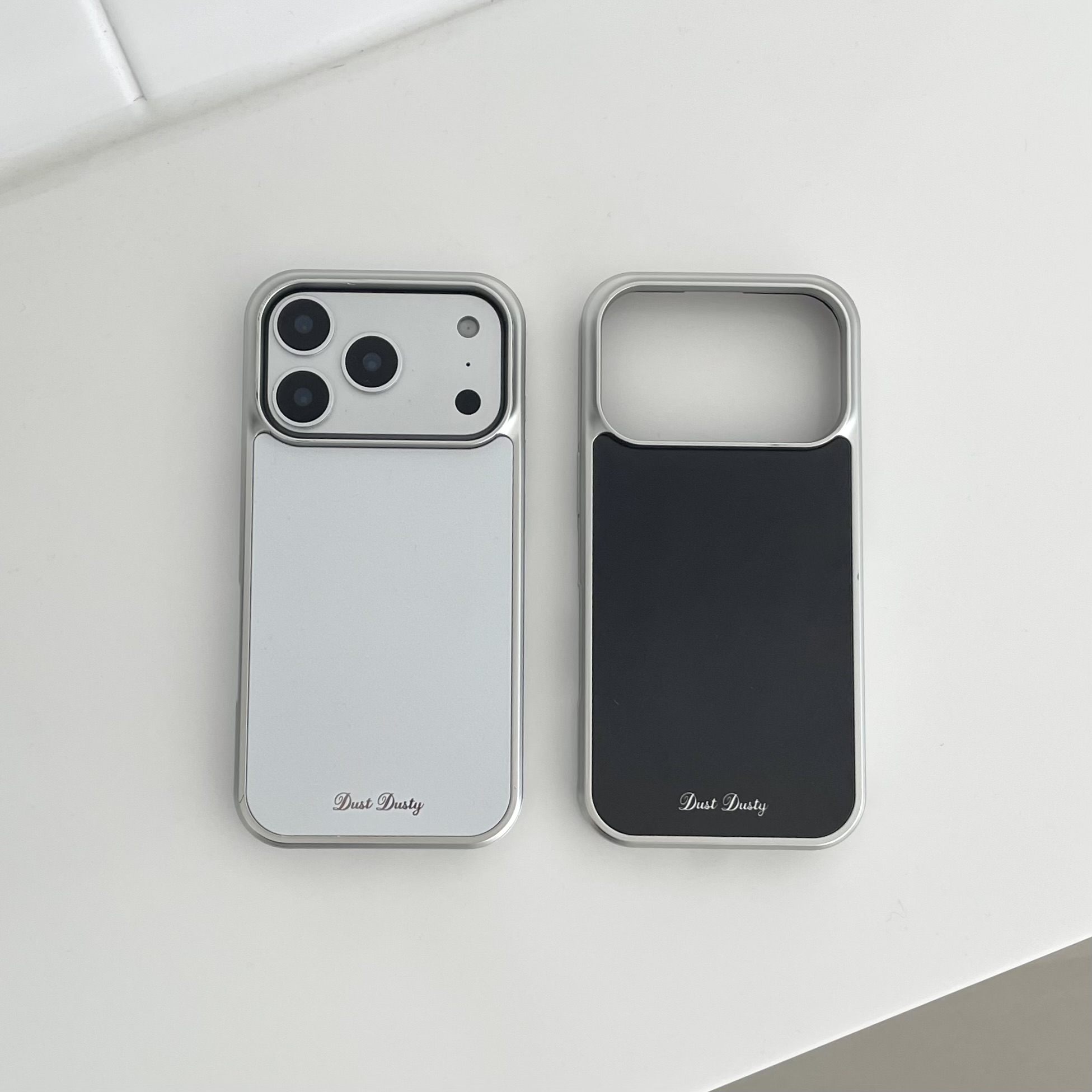 해당 제품은 미러 케이스에 화이트와 블랙으로 인쇄가된 상품으로, 로고 부분이 반사가 되는 미러로 되어있습니다!