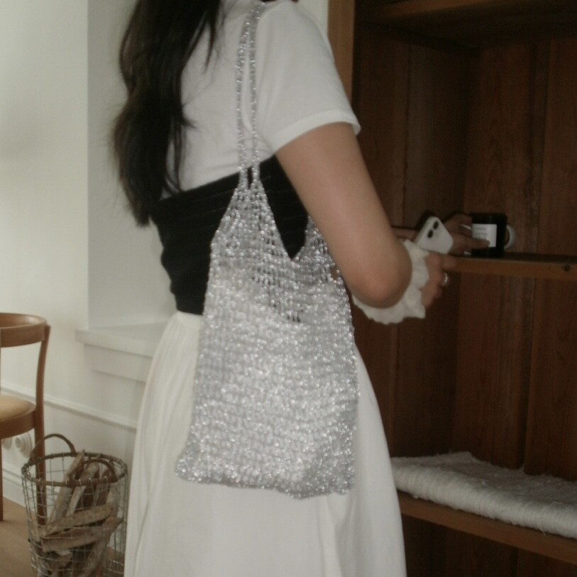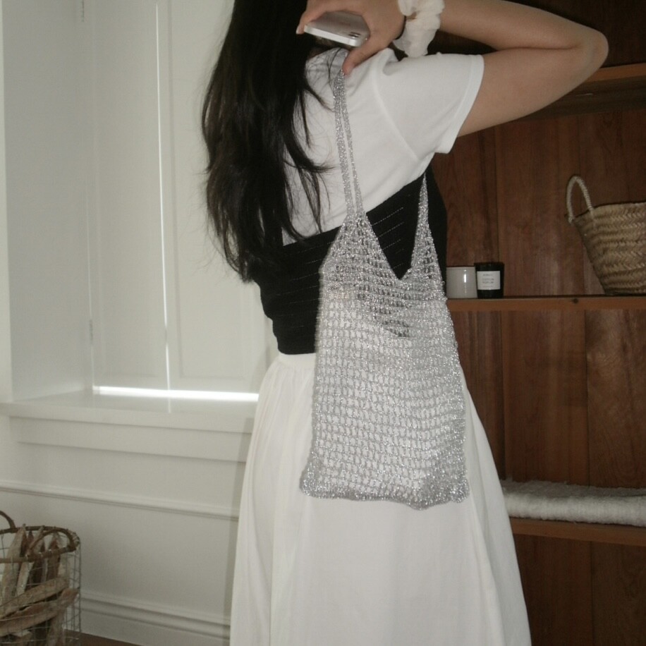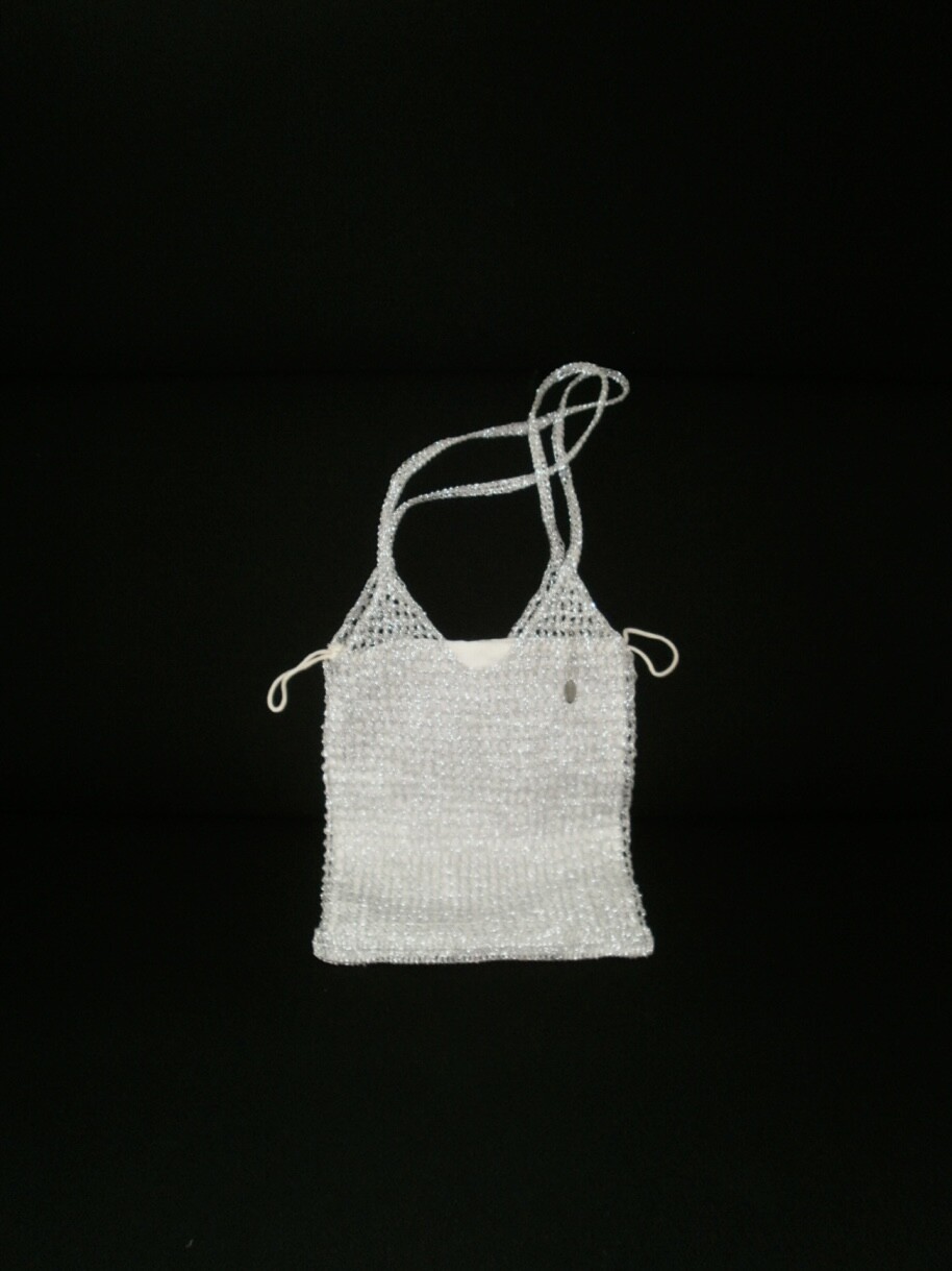[long] silver knit bag