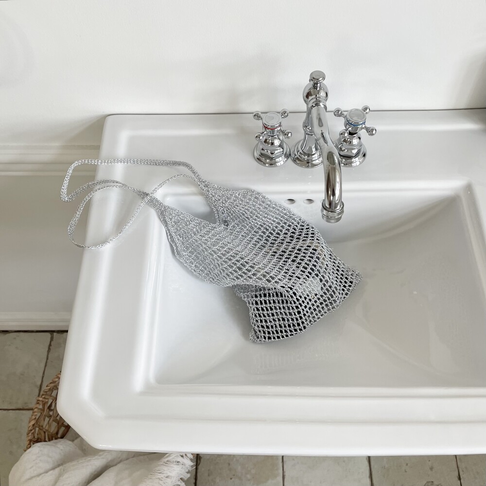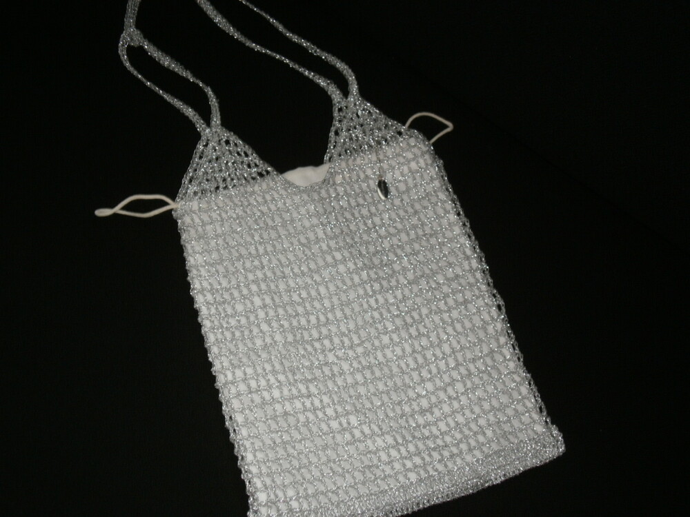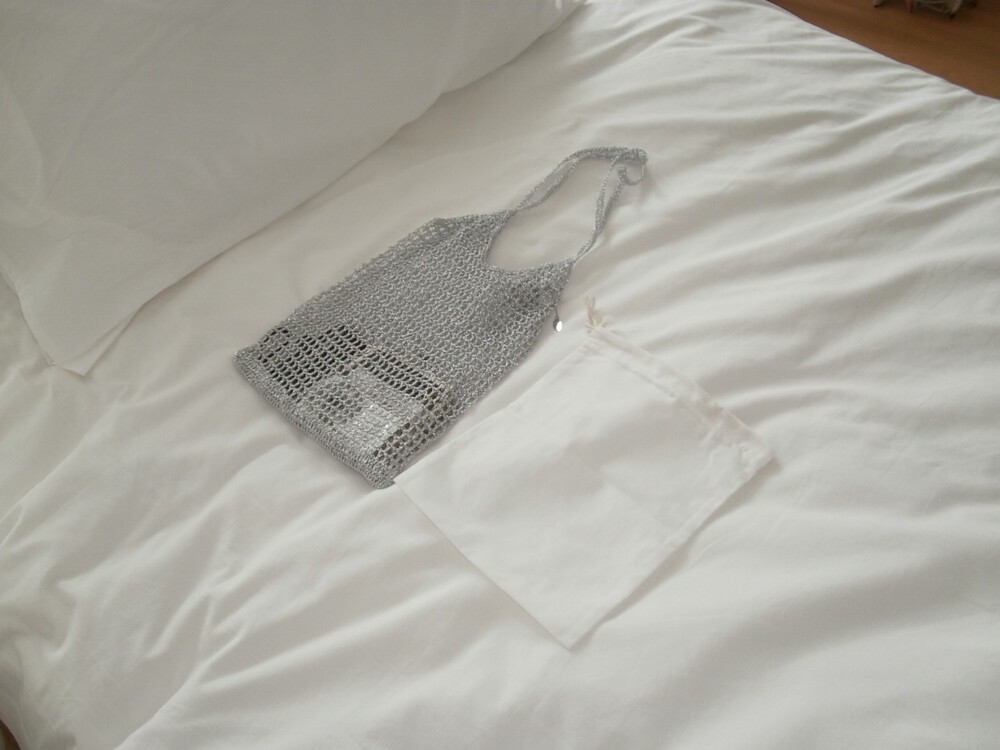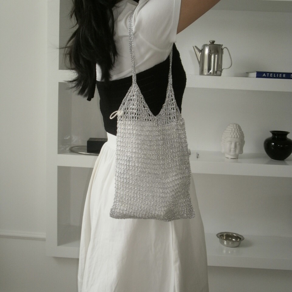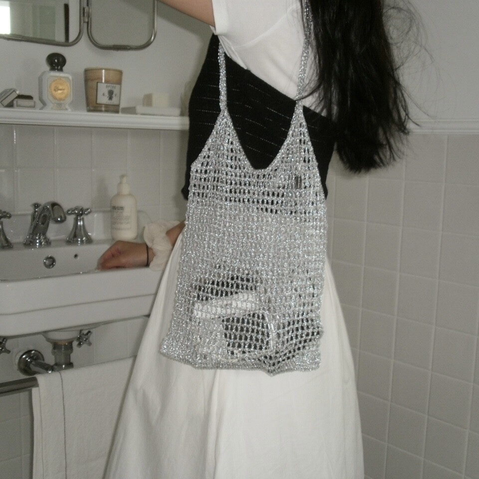 [ long ] silver knit bag