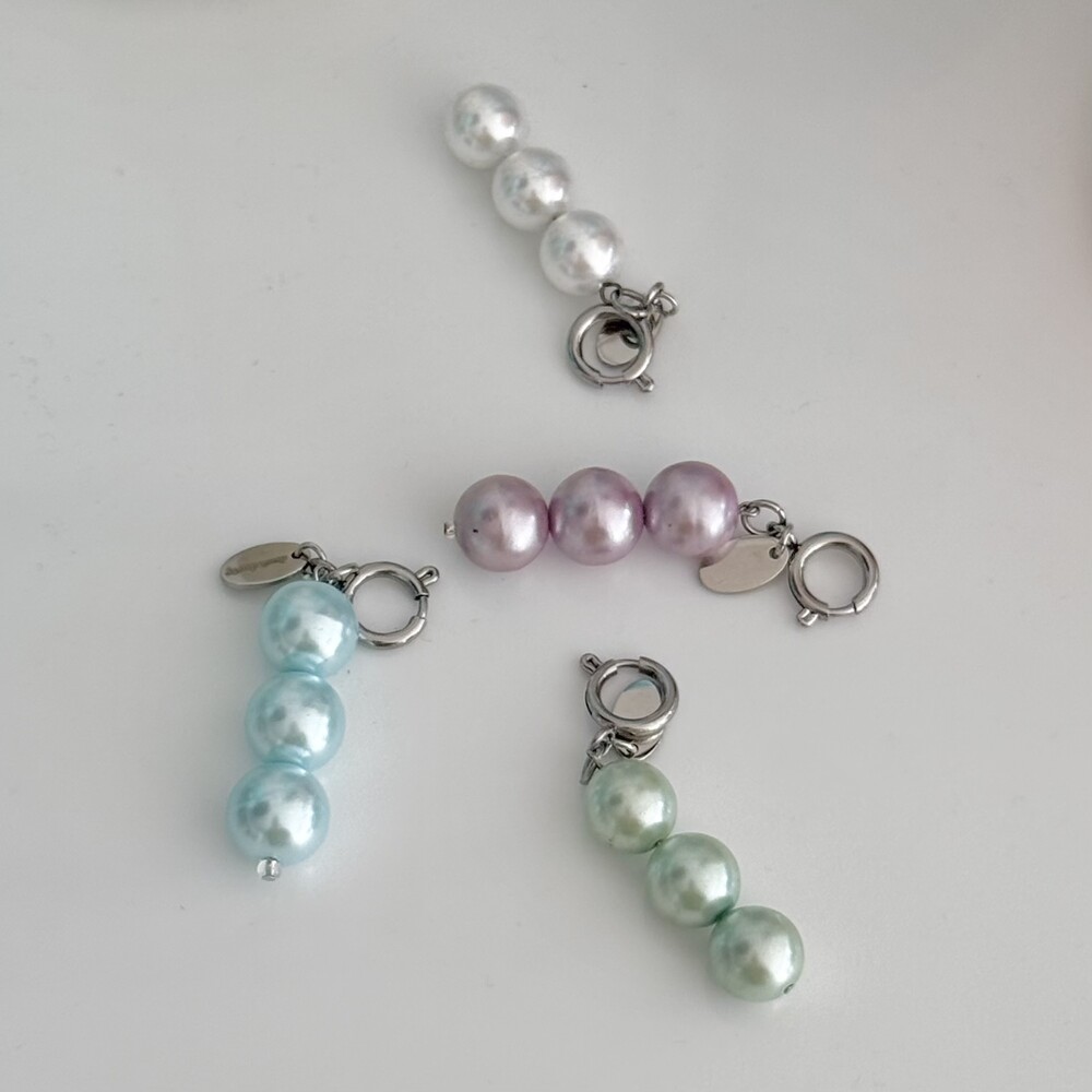 화이트 민트 색상이 구슬 크기가 조금 더 작은 편이고 스카이블루 오키드컬러가 구슬 크기가 큰 편 입니다.